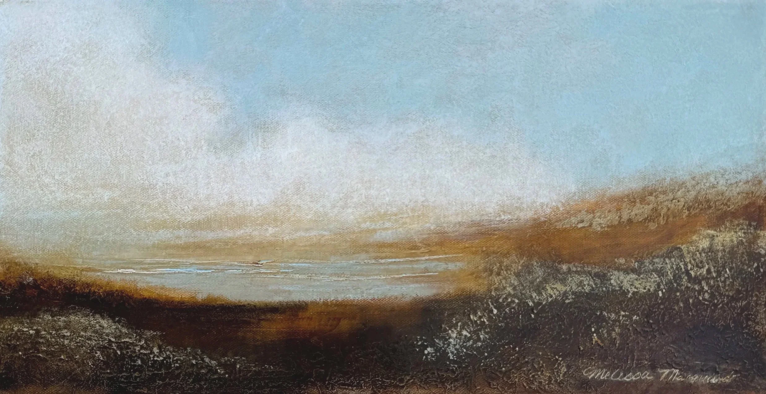 Exploring peaceful, serene moods through soft, neutral tones and a minimalist color palette using wax and pigment. Textured layers reveal a quiet history beneath the surface.