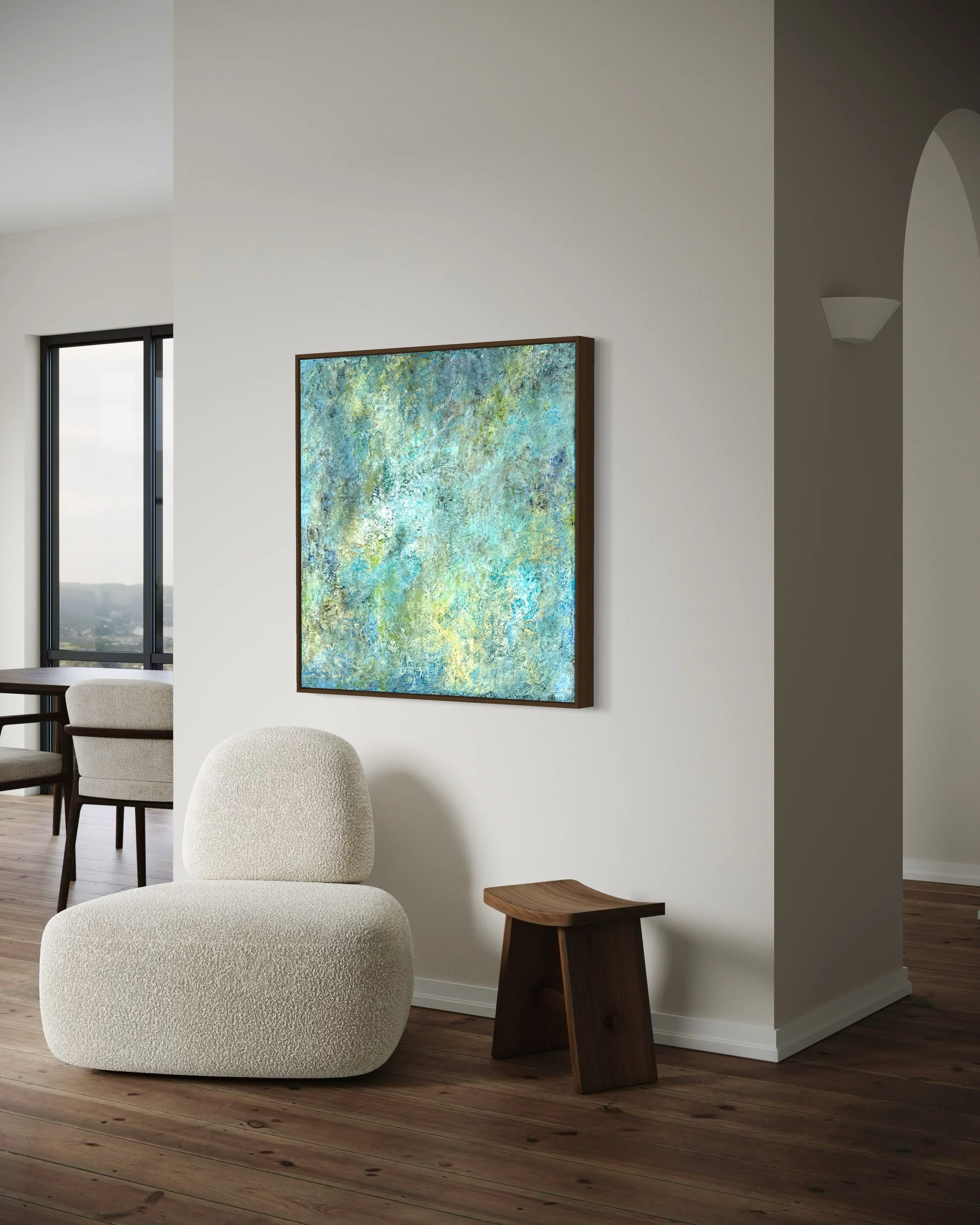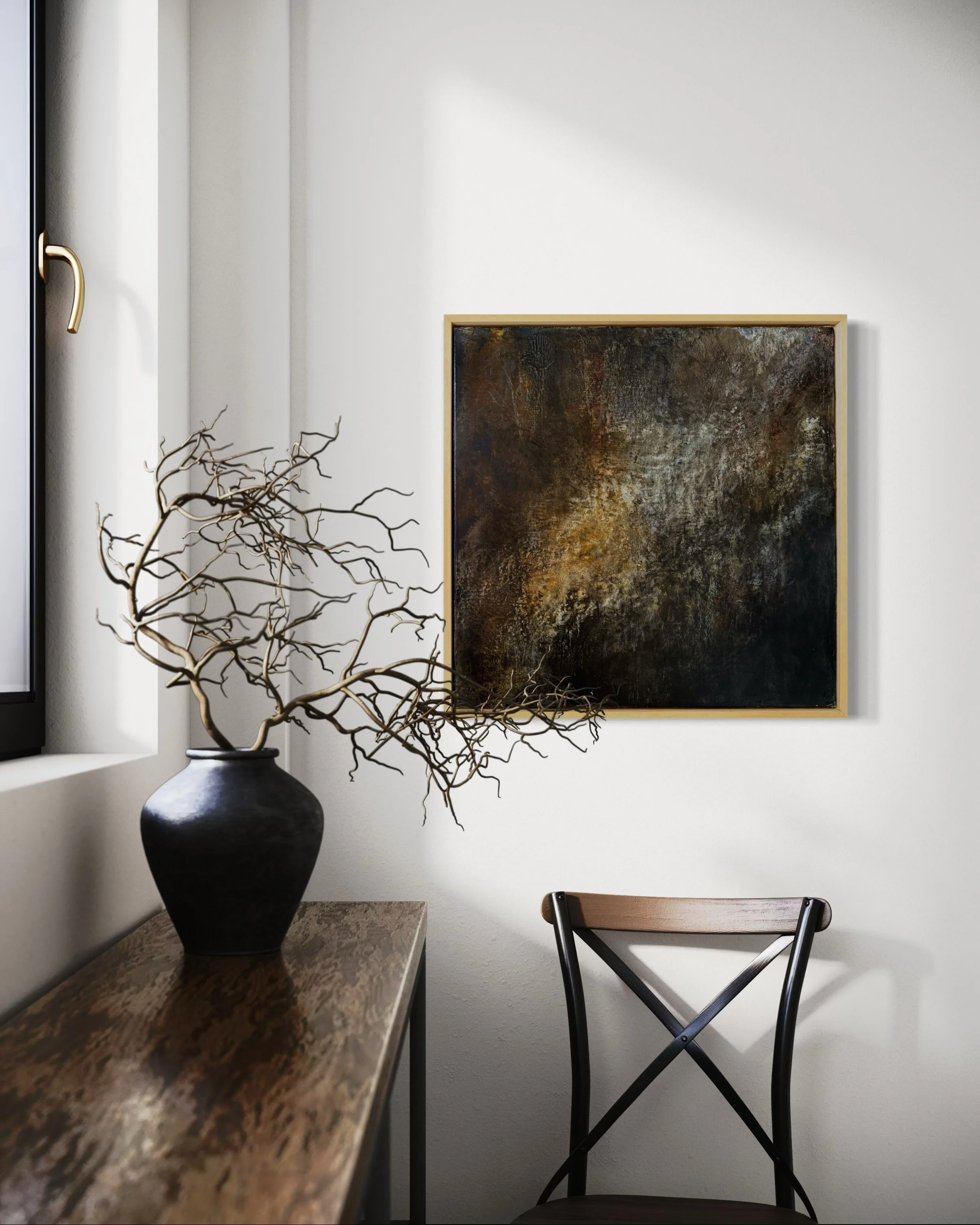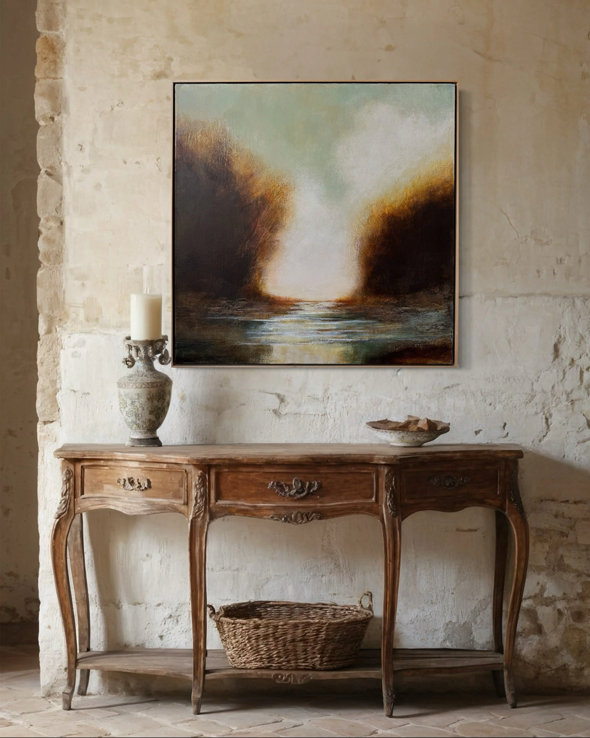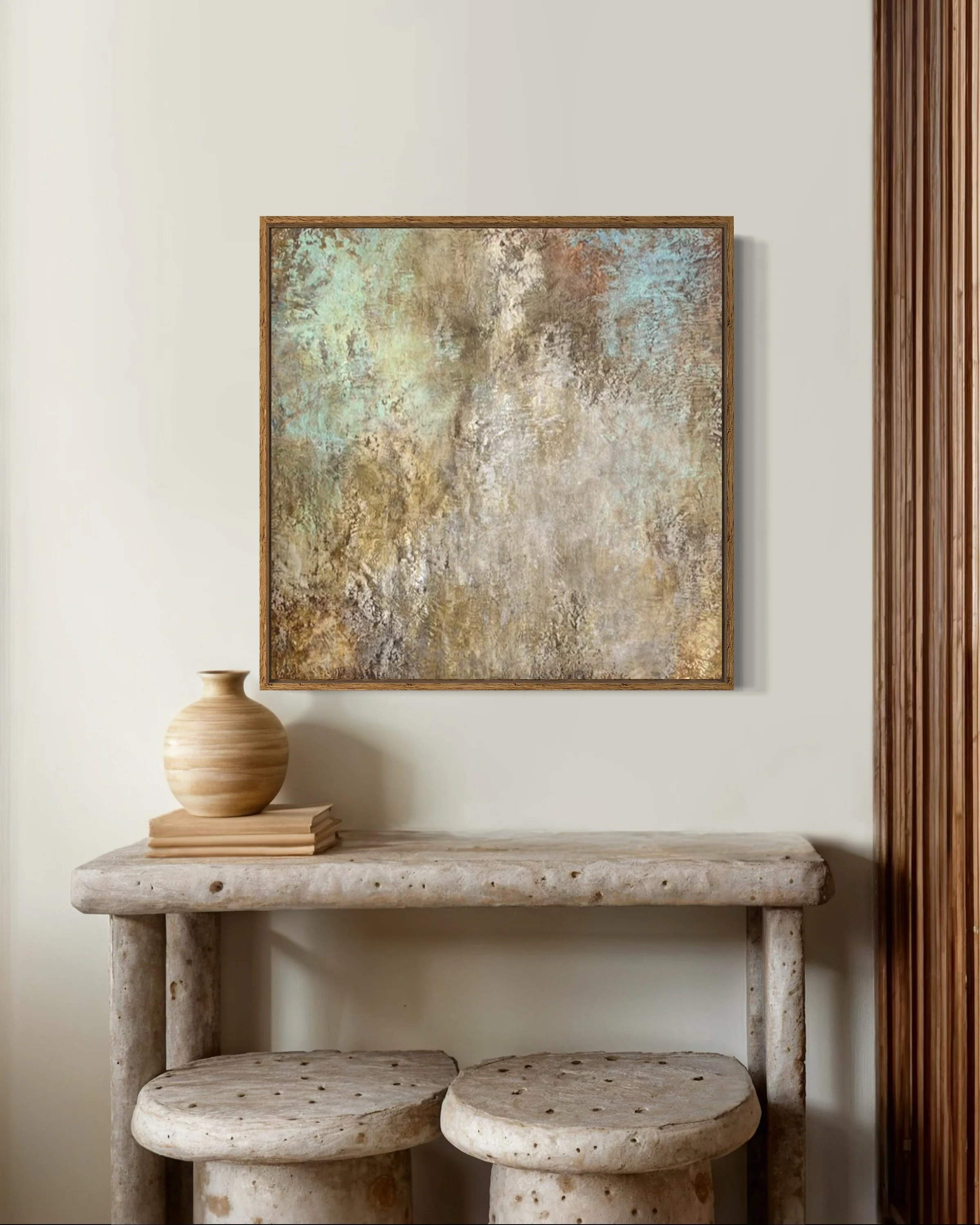 where my paintings come to life in curated spaces designed to highlight their texture, tone, and presence. Each piece transforms its environment, offering a sense of calm, connection, and timeless beauty. Explore how these works resonate in various settings, bringing a layered and serene energy to any space.