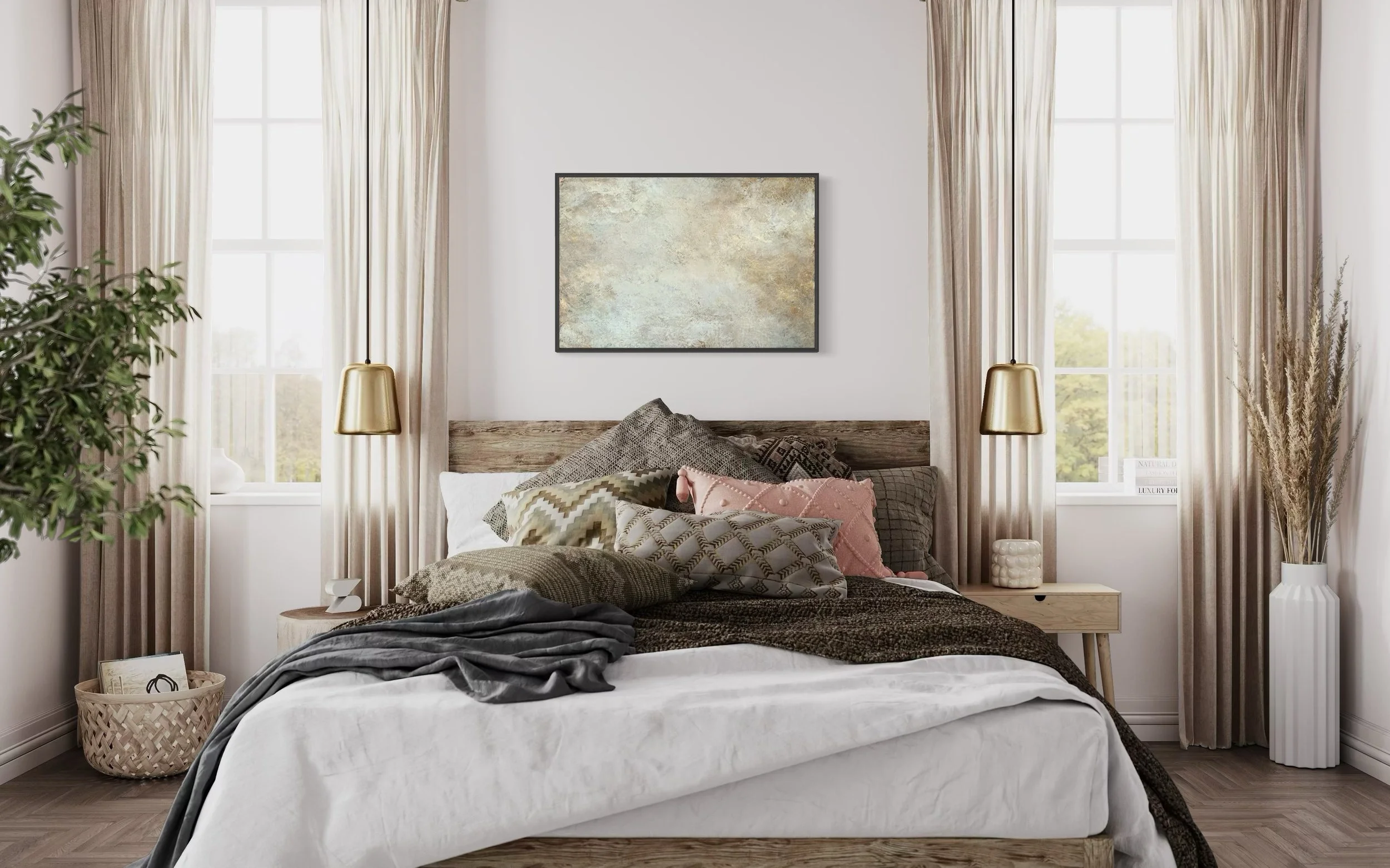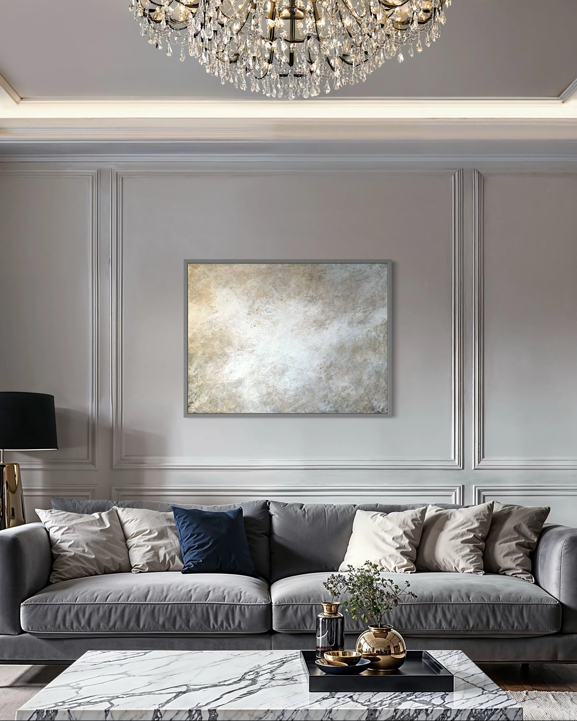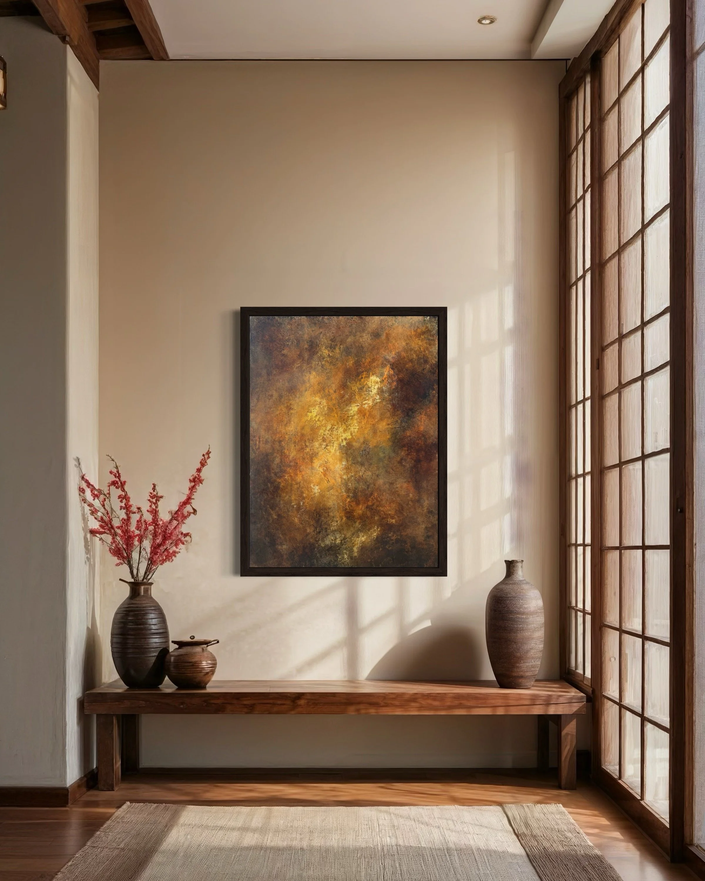 where my paintings come to life in curated spaces designed to highlight their texture, tone, and presence. Each piece transforms its environment, offering a sense of calm, connection, and timeless beauty. Explore how these works resonate in various settings, bringing a layered and serene energy to any space.