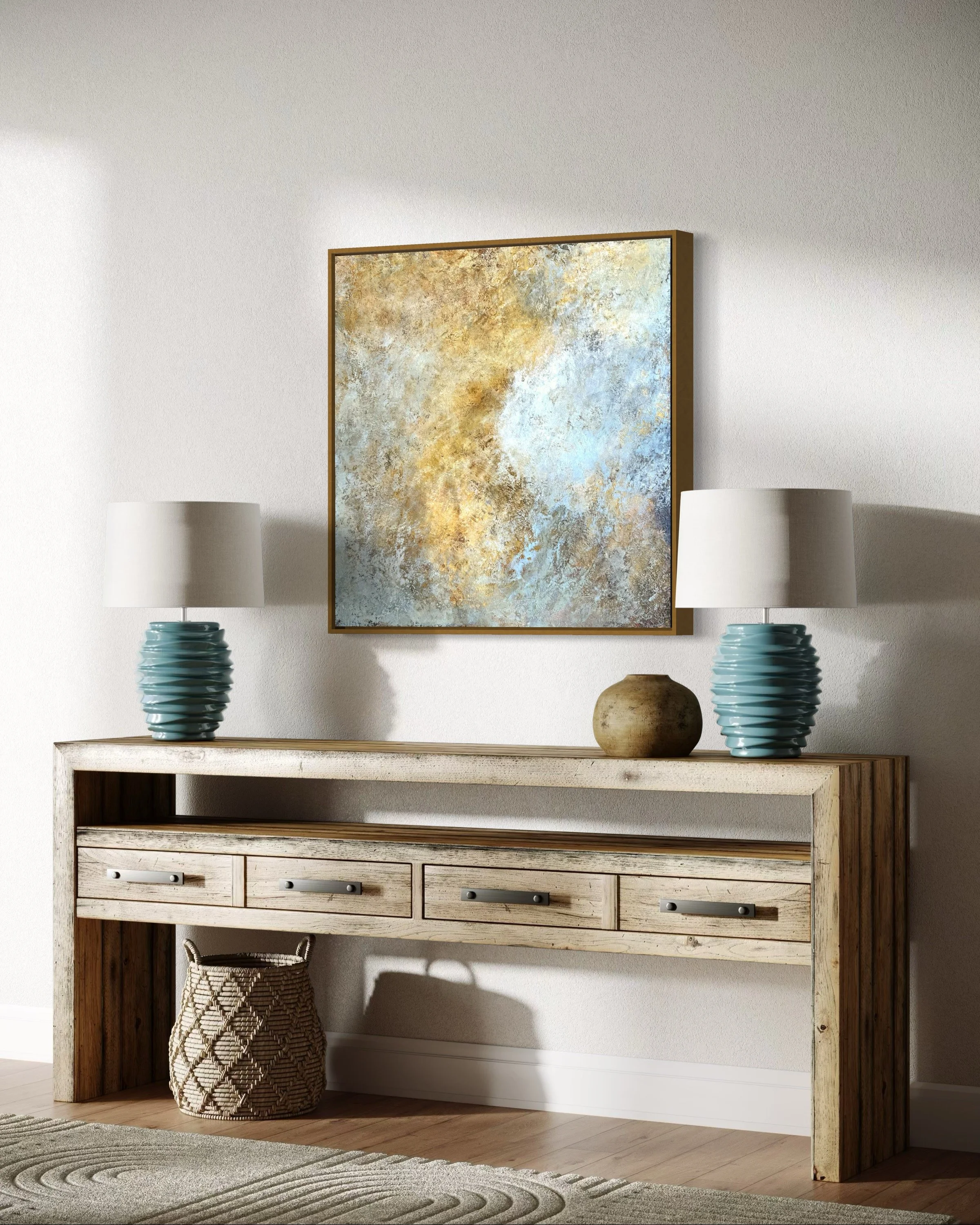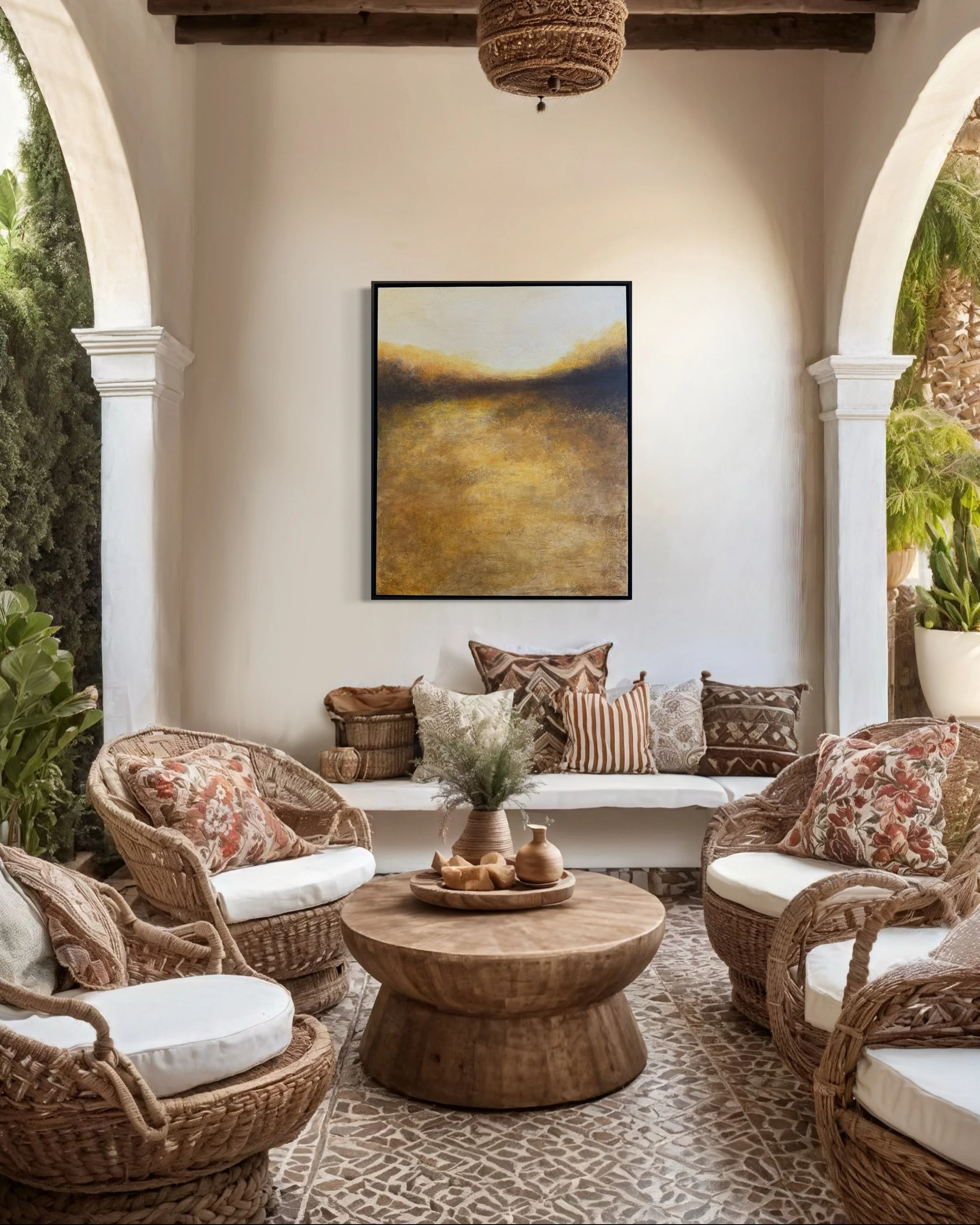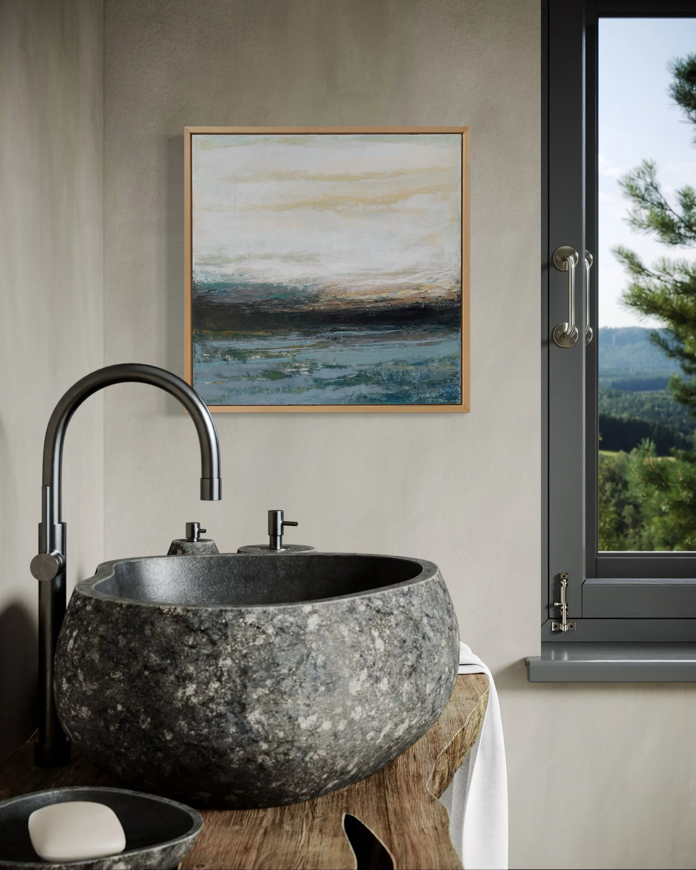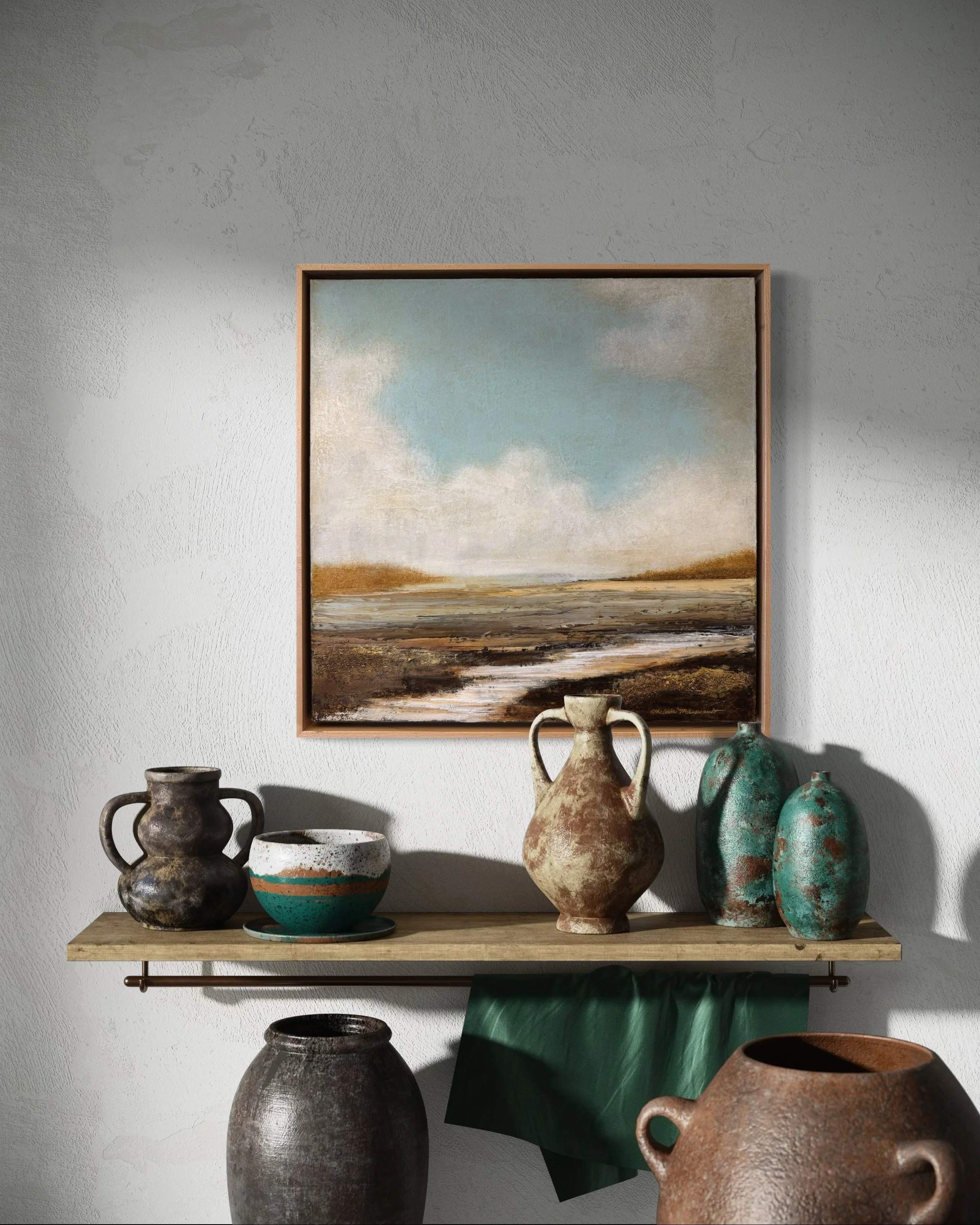 where my paintings come to life in curated spaces designed to highlight their texture, tone, and presence. Each piece transforms its environment, offering a sense of calm, connection, and timeless beauty. Explore how these works resonate in various settings, bringing a layered and serene energy to any space.